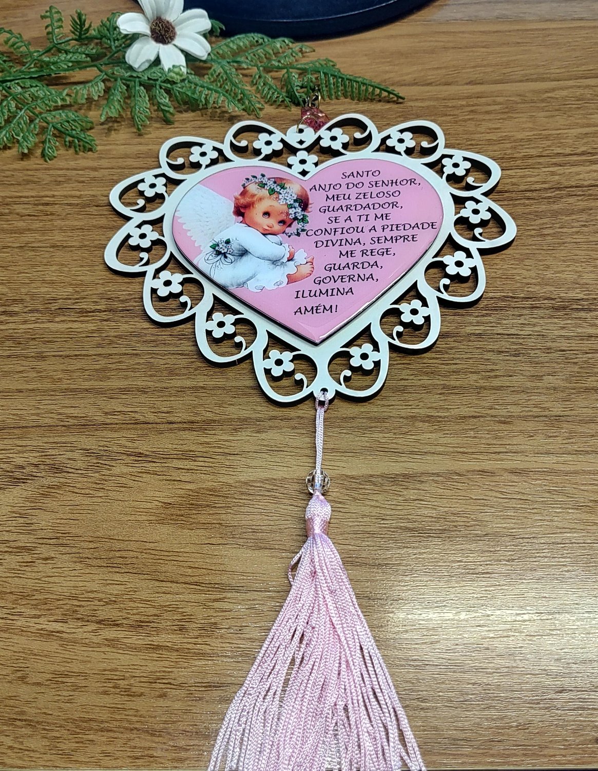 Apresentamos um lindo Adorno perfeito para parede ou porta. Este Adorno apresenta um Anjo da guarda com a oração do Santo Anjo,