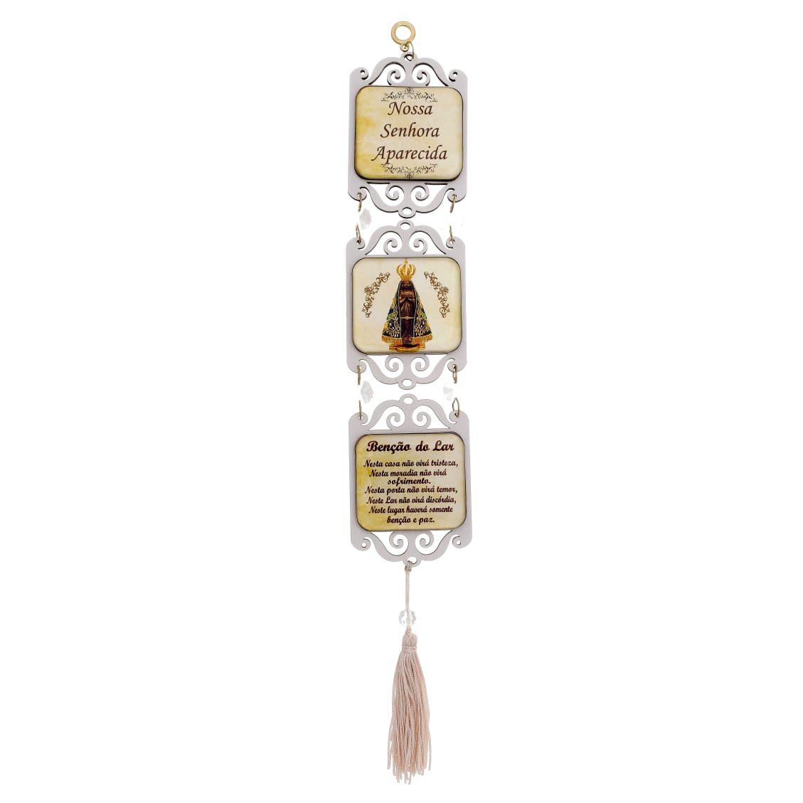 Adorno feito em madeira mdf no formato quadrado com imagem resinada de Aparecida.