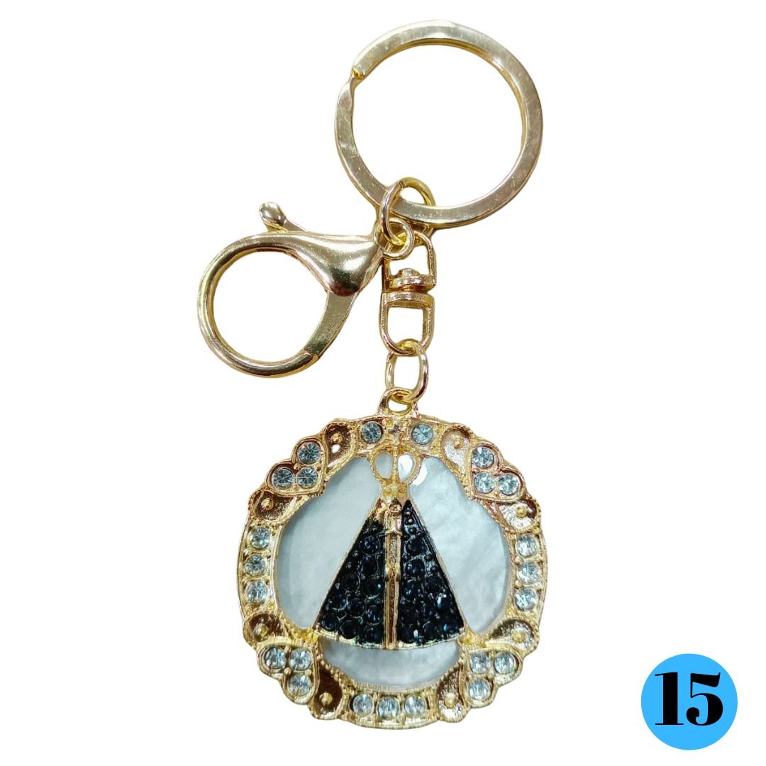 Chaveiro APARECIDA COM FUNDO MADRE PEROLAS - Modelo 15 (12 Unidades)