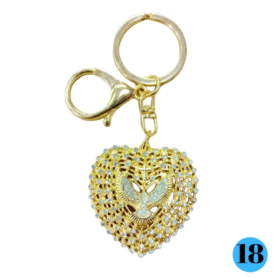 Lindo Chaveiro de nossa senhora DIVINO feito em metal na cor Dourado com pedras de strass. Chaveiro belíssimo com mosquete e argola.