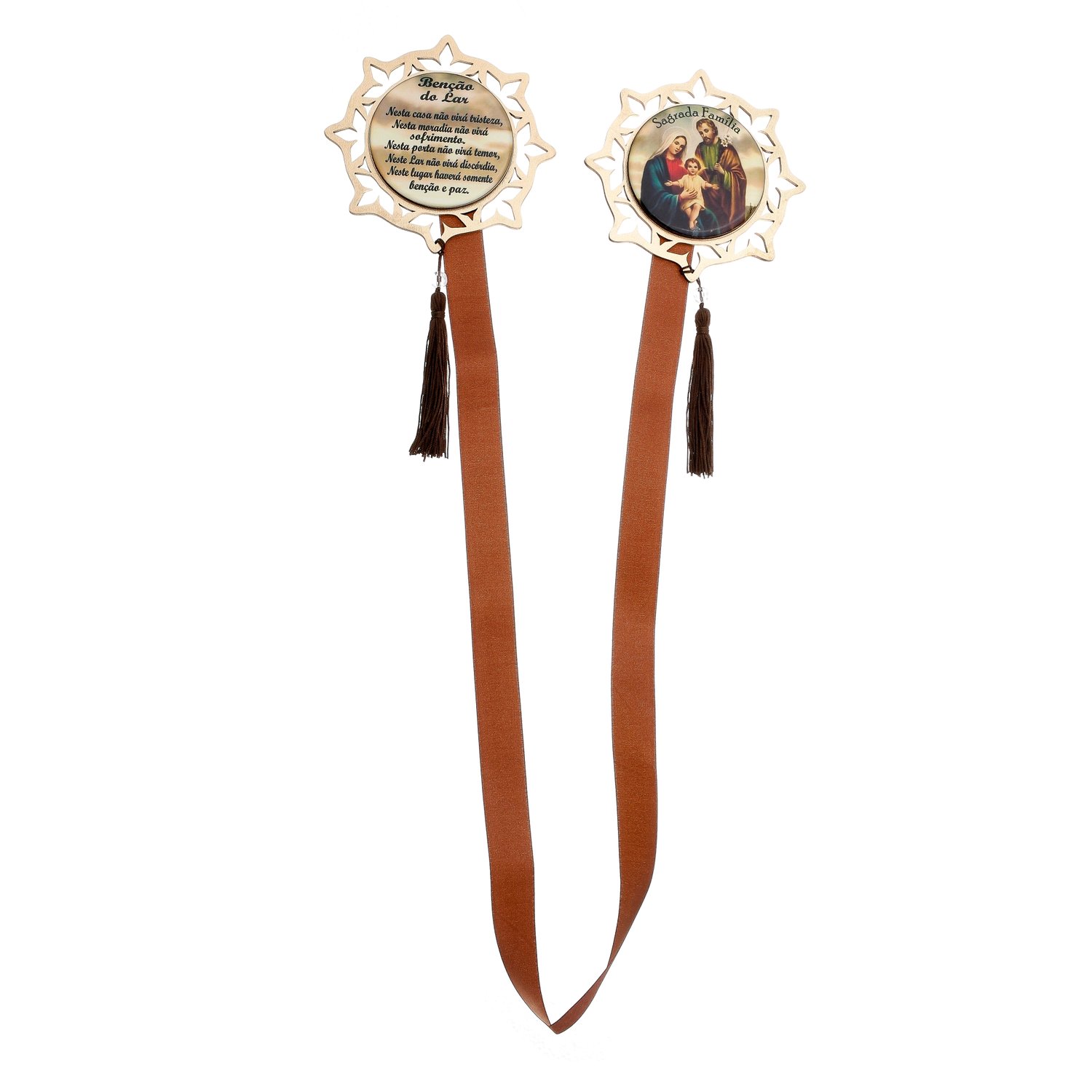 Base em madeira MDF, corte a laser, na cor marrom, medindo 13,5 cm de diâmetro.