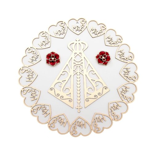 Linda Mandala em Madeira mdf Com Imagem da Medalha de Nossa Senhora Aparecida. Com detalhes em Strass. Belíssima peça para Abençoar e decorar o seu Lar! Diâmetro: 43cm Estrutura: mdf Espessura: 6mm