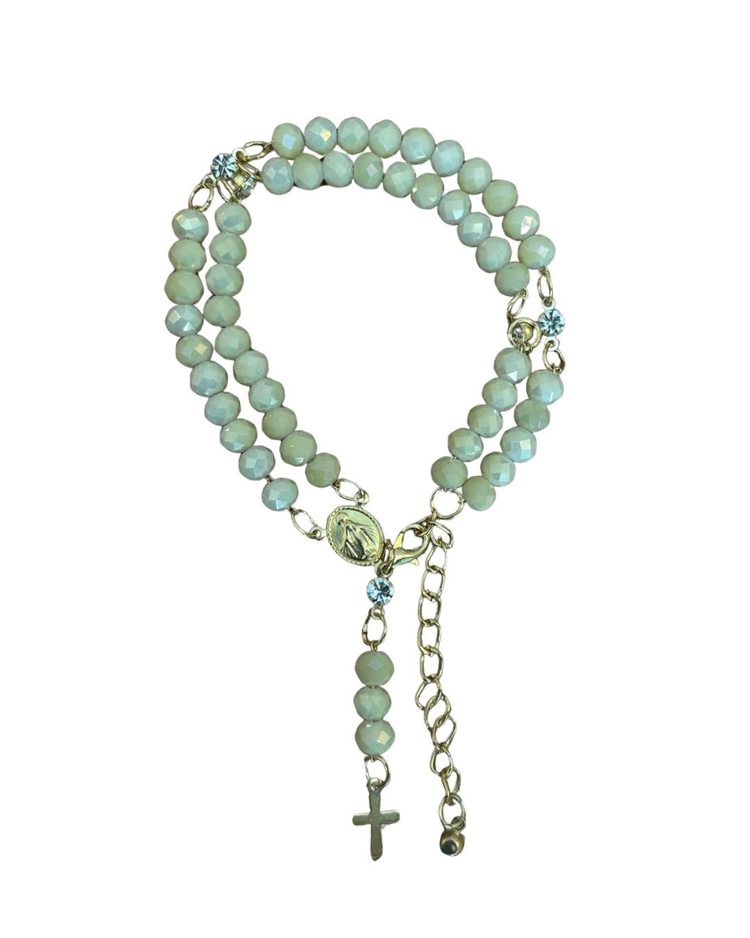 Aparecida e contas de cristal VERDE CLARINHO TRANSPARENTE.
